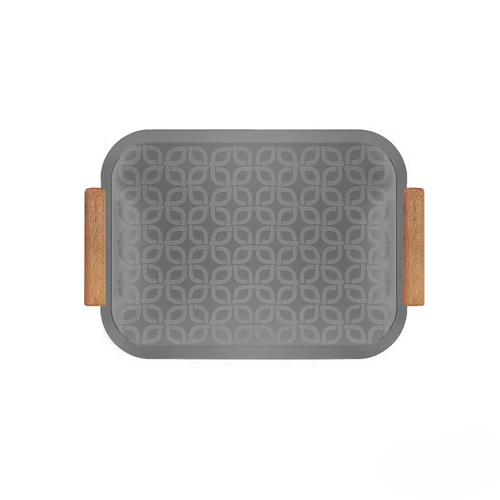 سینی فلزی با طراحی مدرن و مقاوم، یک انتخاب فوقالعاده برای سرو روزمره و پذیراییهای خاص است. این سینی از جنس آهن ضخیم و بادوام ساخته شده و با طرح هندسی نقش بسته روی آن، جلوهای لوکس و بینقص به آشپزخانه و میز پذیرایی شما میبخشد.ترکیب بدنه فلزی با دستگیرههای چوبی مقاوم علاوه بر زیبایی، حمل سینی را بسیار راحت و ایمن میکند. طراحی سطح سینی به گونهای است که مانع لیز خوردن ظروف شده و برای استفاده بهعنوان سینی چای، سینی قهوه، سینی پذیرایی، سینی دکور مناسب است.این محصول با توجه به استانداردهای کیفیت برند ساخته شده و برای استفاده در خانه، کافه، رستوران و محیطهای کاری گزینهای حرفهای و ماندگار محسوب میشود.