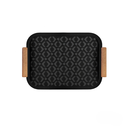 سینی فلزی با طراحی مدرن و مقاوم، یک انتخاب فوقالعاده برای سرو روزمره و پذیراییهای خاص است. این سینی از جنس آهن ضخیم و بادوام ساخته شده و با طرح هندسی نقش بسته روی آن، جلوهای لوکس و بینقص به آشپزخانه و میز پذیرایی شما میبخشد.ترکیب بدنه فلزی با دستگیرههای چوبی مقاوم علاوه بر زیبایی، حمل سینی را بسیار راحت و ایمن میکند. طراحی سطح سینی به گونهای است که مانع لیز خوردن ظروف شده و برای استفاده بهعنوان سینی چای، سینی قهوه، سینی پذیرایی، سینی دکور مناسب است.این محصول با توجه به استانداردهای کیفیت برند ساخته شده و برای استفاده در خانه، کافه، رستوران و محیطهای کاری گزینهای حرفهای و ماندگار محسوب میشود.